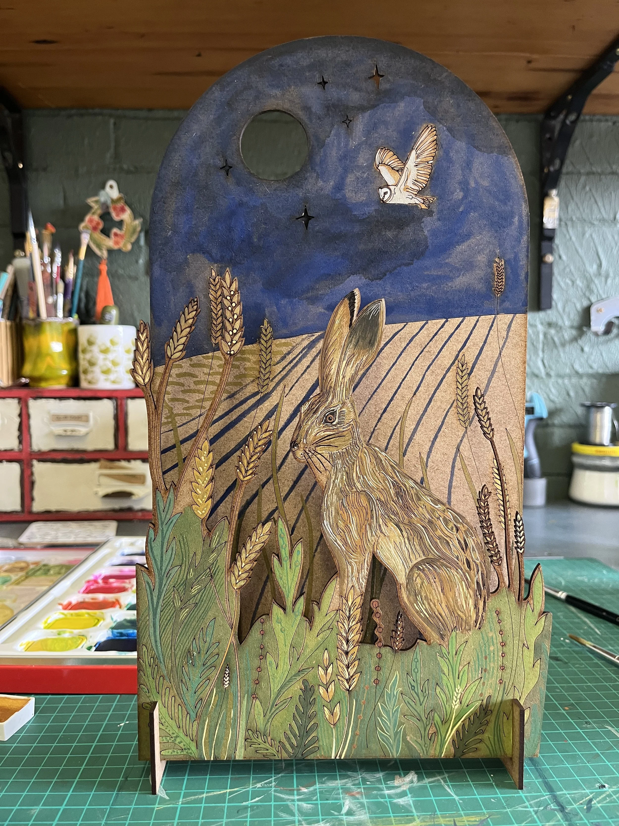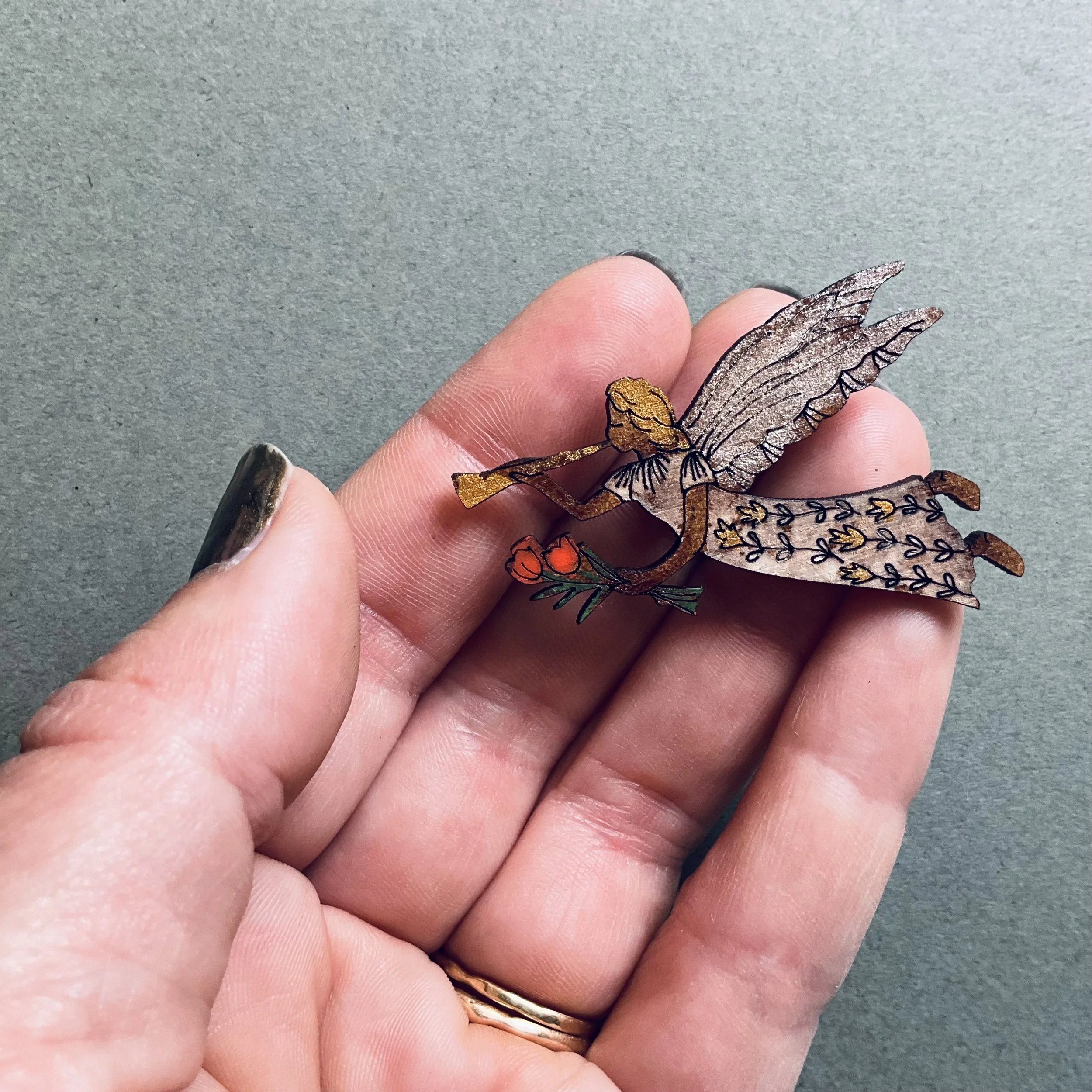 The initial idea for the Angel came from the number of requests we had for our first Angel design I created in 2022. I knew that there was potentially a demand there for it, and I also felt like I had exhausted the British Flora and Fauna that could represent the festive season. I wanted it to feel Christmassy and charming, and still have my artistic style at it’s core. I created a mood board on Pinterest ( yes I know I sound like I’m planning a wedding in the early 2000’s) and kept coming back to Eastern European Folk Art styles. I loved the idea of the Angel carrying a tribute, either flowers of some sort of banner.