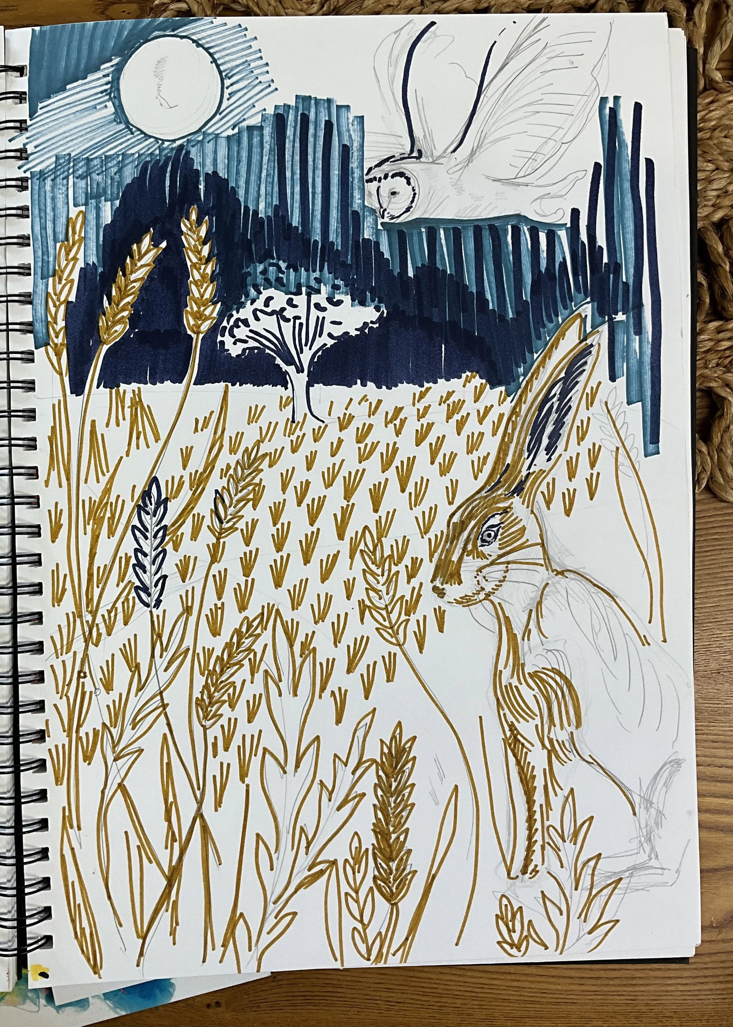 It might seem a little backward in these modern days of ipads and apple pencils, but I still very much have to explore new ideas in pen and paper, before looking to my digital tools. Things just don’t make sense until there is a physical drawing. And a blank page on Illustrator or Photoshop just leave me cold and likely to procrastinate. Strangely, I was the same writing my dissertation all those years ago, and nearly wrote all 8000 words by hand before reaching for the computer.