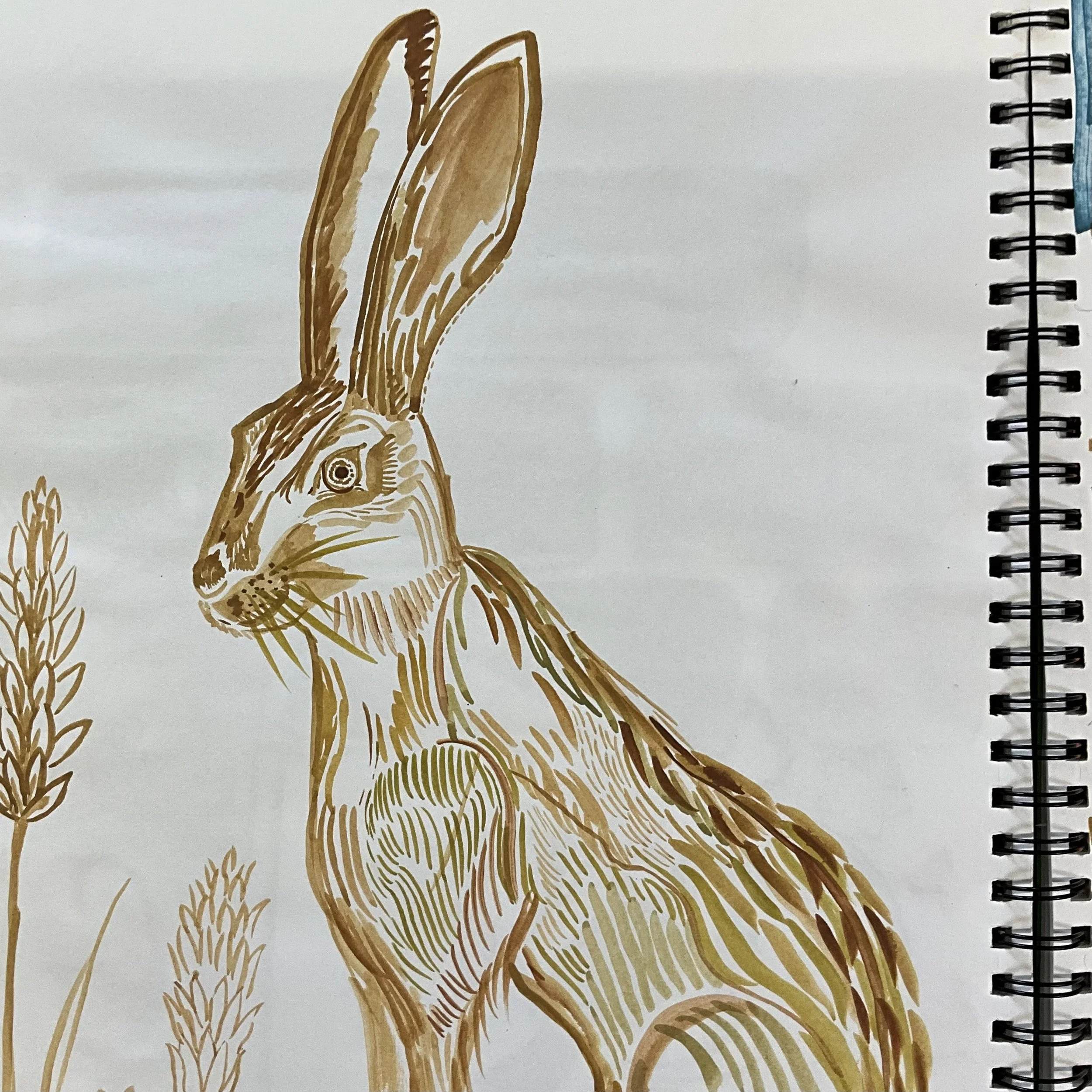 Initial sketchbooks, I worked in a yellow ochre felt tip, because black felt too stark even for preliminary sketches