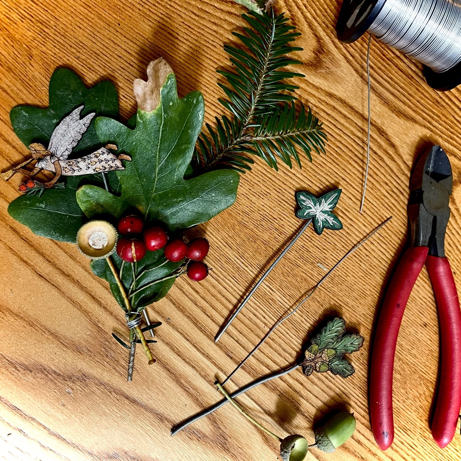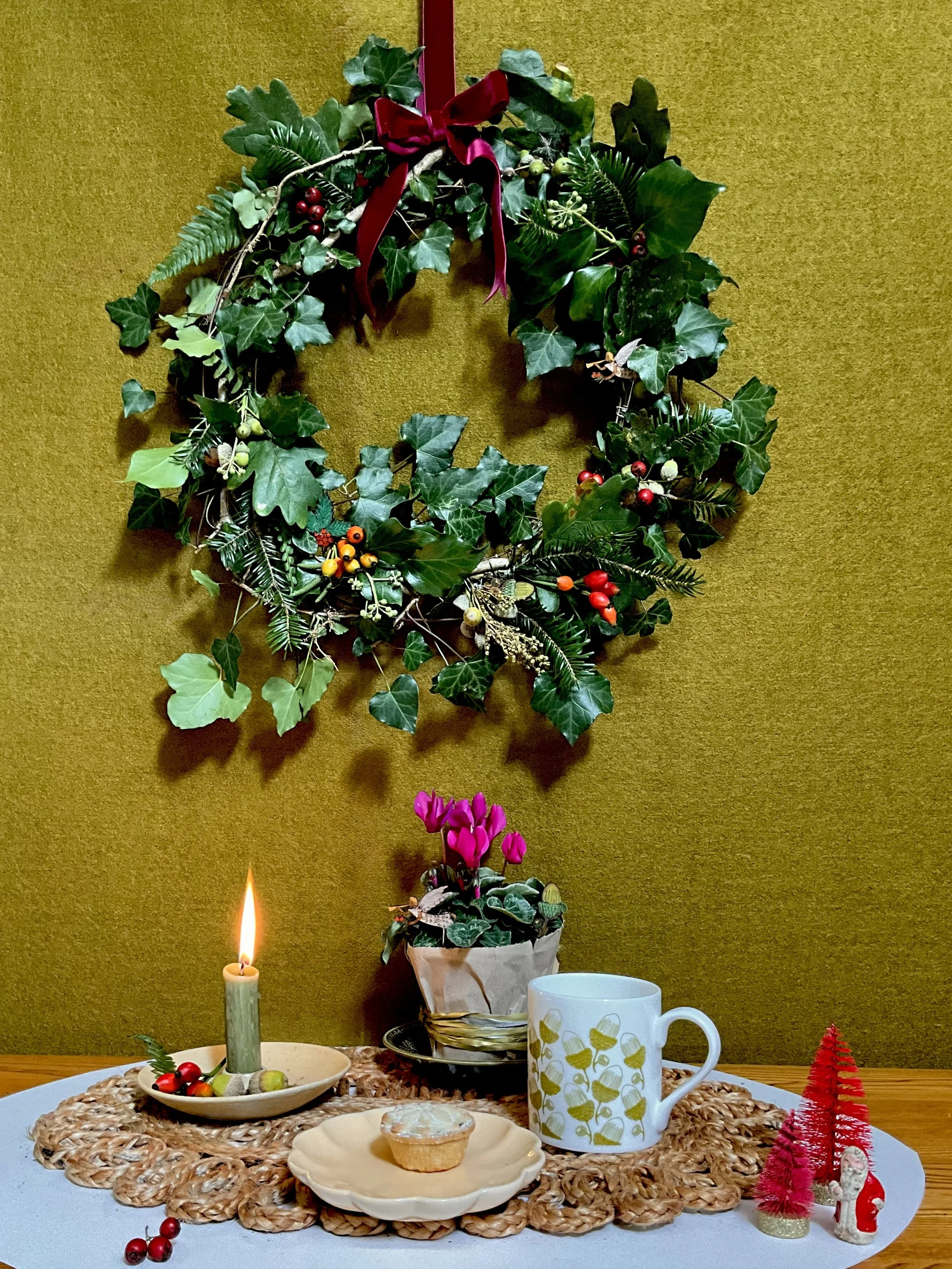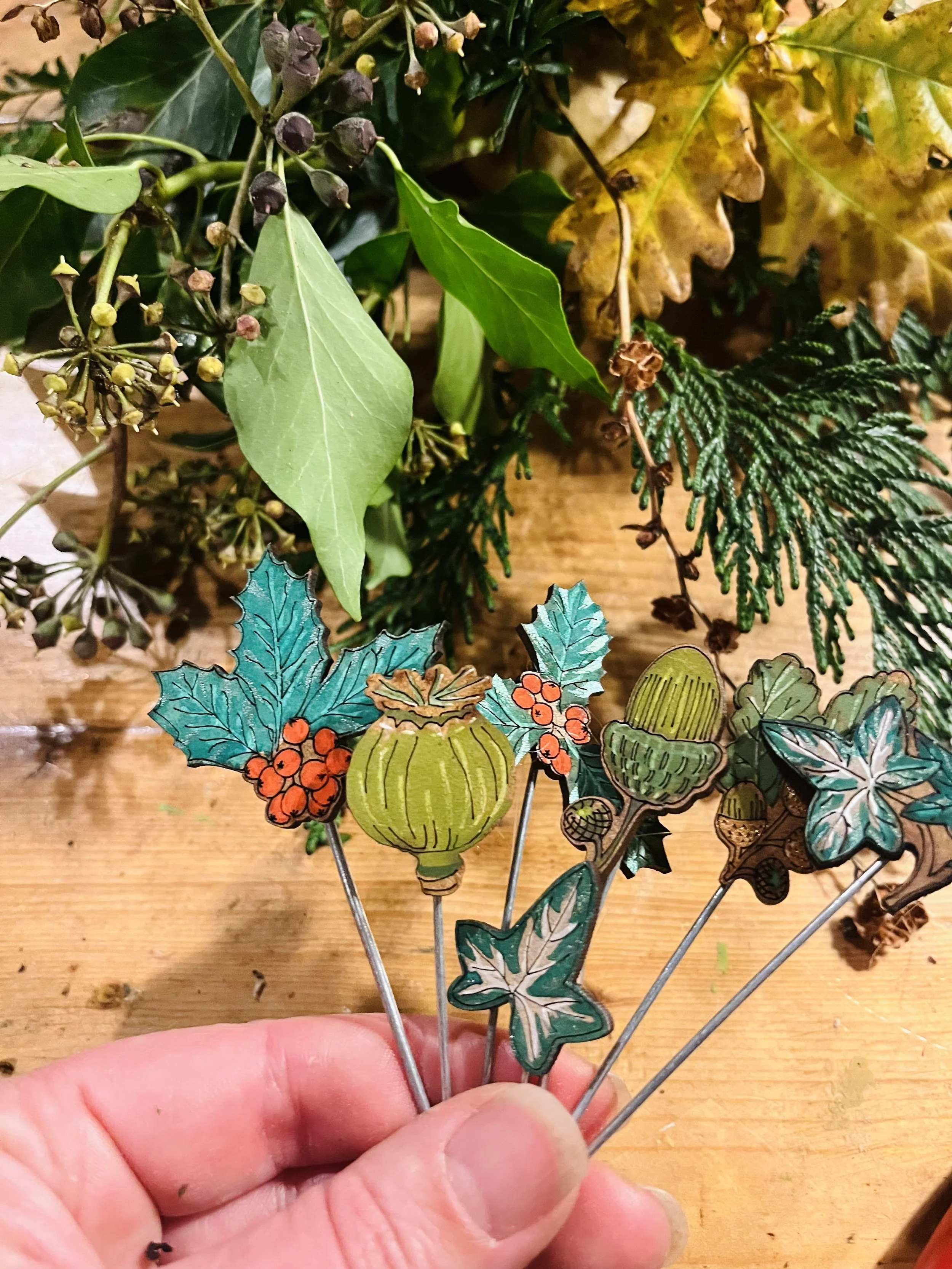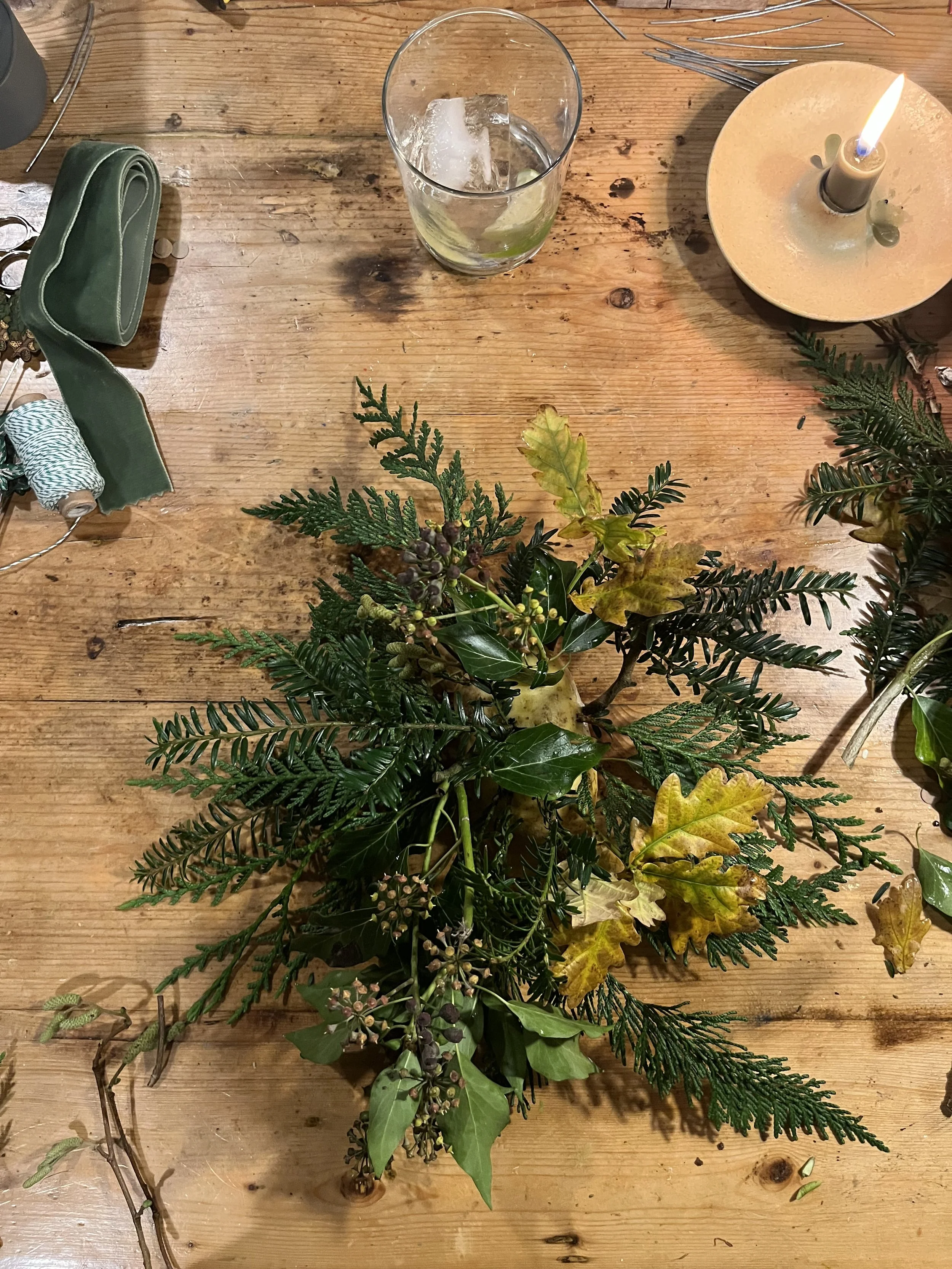 Once you’ve doodled to your hearts desire, wrap your gifts, and then comes the fun part of adding some finishing touches. Much like my paper stash, I have a ribbon one too. Collecting throughout the year, and sometimes purchasing some new lengths like these lustrous velvet ribbons from a local haberdashery. I love to add some sprigs of foliage, these were left overs from the weekends wreath making endeavours. But a few little snips from the garden or a hedgerow near by and you’re good to go. The addition of foliage to remind us of the ever revolving wheel of the year. Whilst collating my pieces, I noticed the starting buds of some willow, and the beginnings of next Springs catkins on the Hazel - and that is a hopeful thing in action.