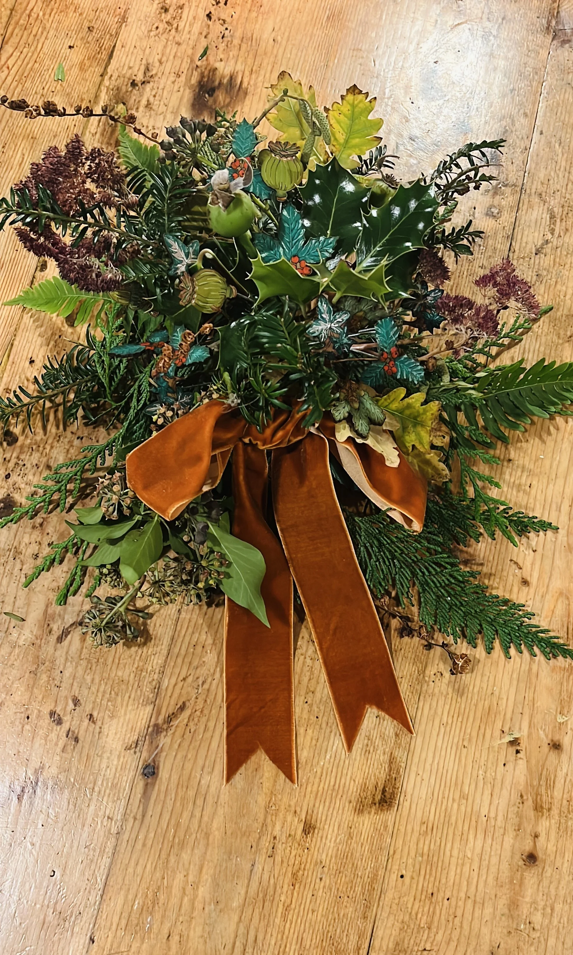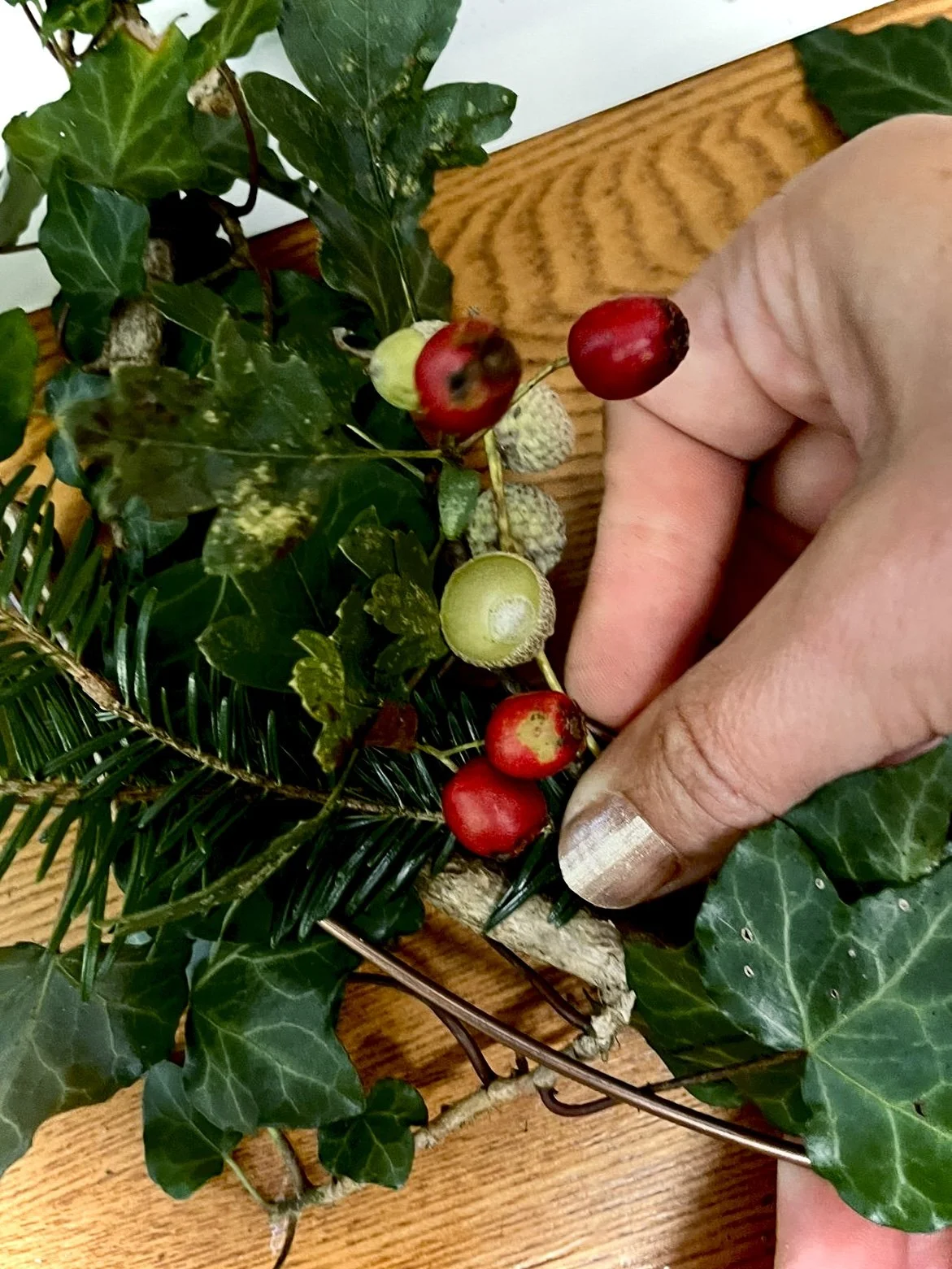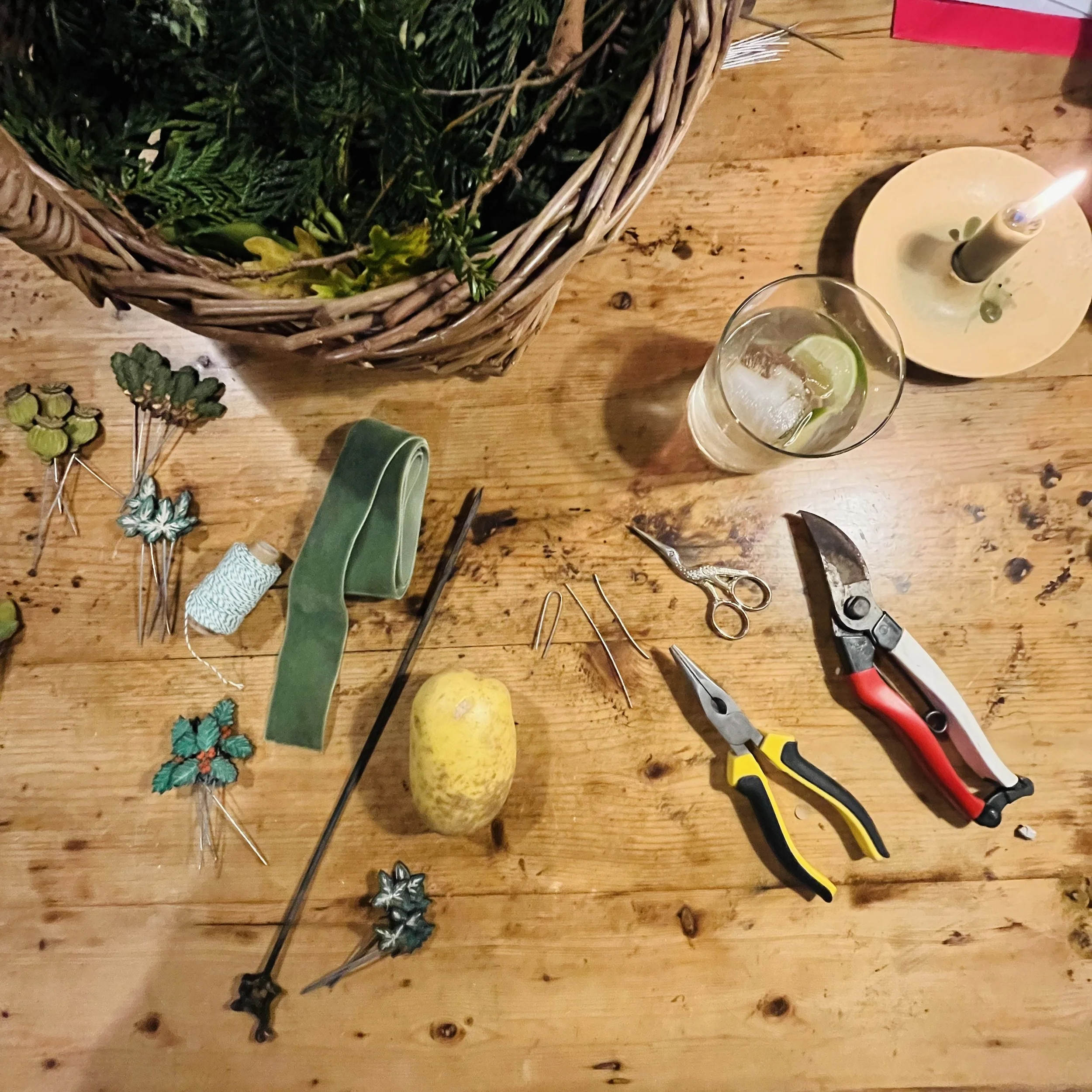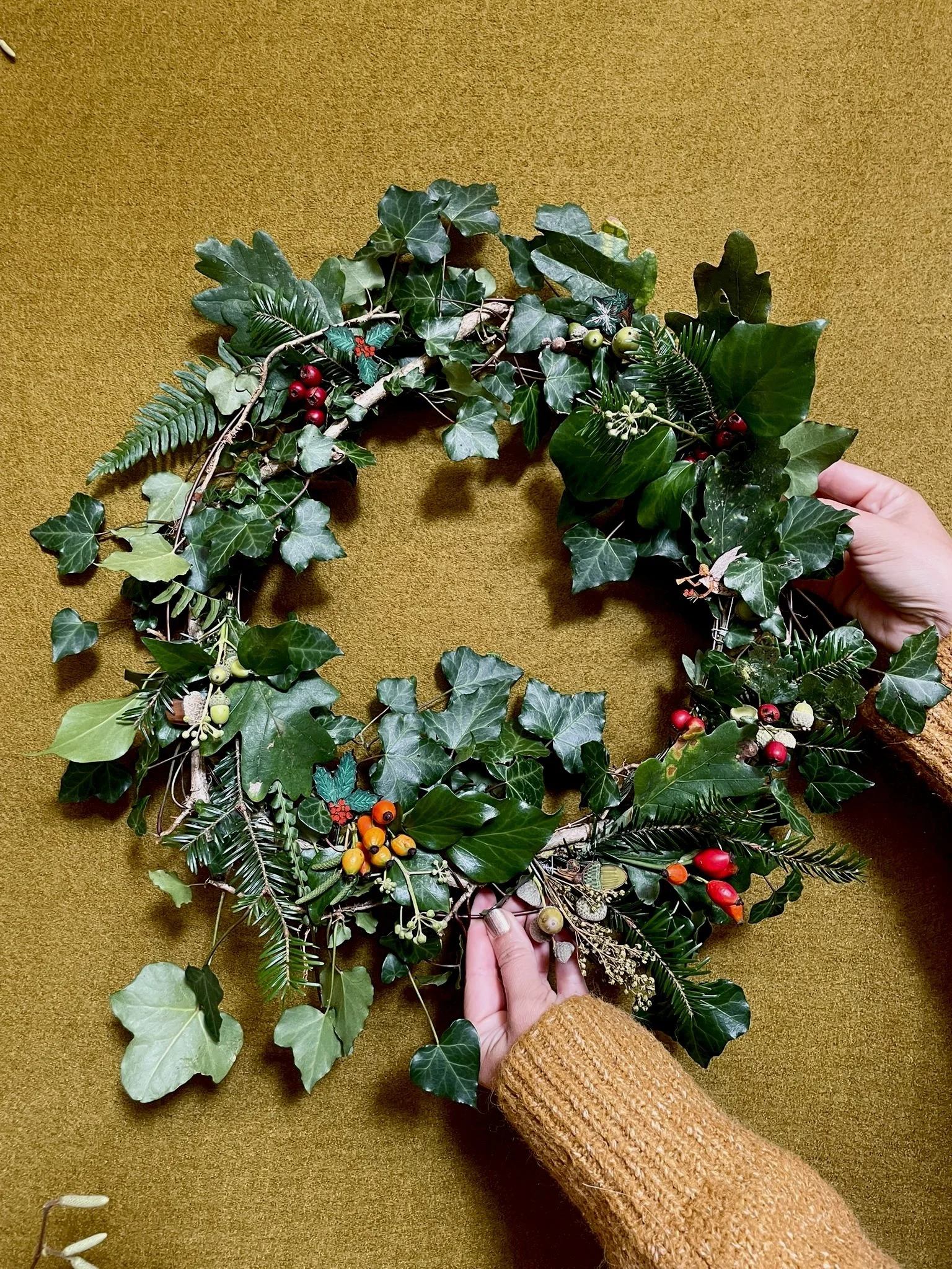 Once you’ve doodled to your hearts desire, wrap your gifts, and then comes the fun part of adding some finishing touches. Much like my paper stash, I have a ribbon one too. Collecting throughout the year, and sometimes purchasing some new lengths like these lustrous velvet ribbons from a local haberdashery. I love to add some sprigs of foliage, these were left overs from the weekends wreath making endeavours. But a few little snips from the garden or a hedgerow near by and you’re good to go. The addition of foliage to remind us of the ever revolving wheel of the year. Whilst collating my pieces, I noticed the starting buds of some willow, and the beginnings of next Springs catkins on the Hazel - and that is a hopeful thing in action.